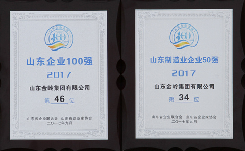 2017年9月28日,2017山東企業(yè)100強(qiáng)發(fā)布會(huì)在濟(jì)南召開(kāi),會(huì)上,山東省企業(yè)聯(lián)合會(huì)、山東省企業(yè)家協(xié)會(huì)執(zhí)行會(huì)長(zhǎng)宋振海向社會(huì)發(fā)布了2017山東企業(yè)100強(qiáng)、2017山東制造業(yè)企業(yè)50強(qiáng)和2017山東服務(wù)業(yè)企業(yè)30強(qiáng)榜單。金嶺集團(tuán)位列2017山東企業(yè)100強(qiáng)第46位,山東制造業(yè)企業(yè)50強(qiáng)第34位。