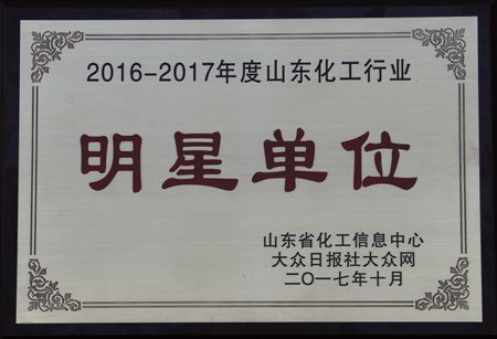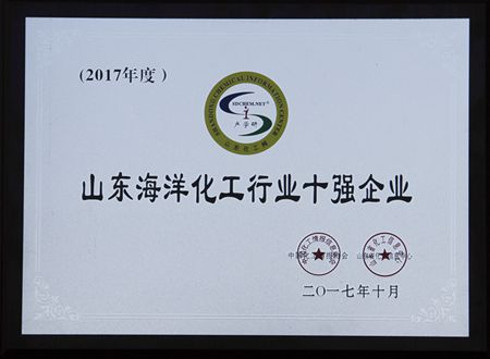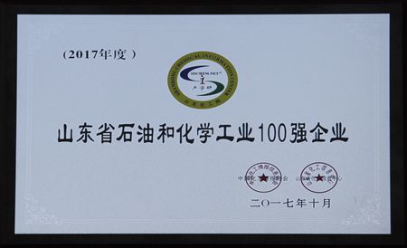 2017年10月31日,2017(第六屆)中國化工產學研高峰論壇在濟南召開,山東省石油和化學工業100強企業發布會同期舉行。會上,中國化工情報信息協會和山東省化工信息中心參照慣例并結合山東省企業的現實數據,通過主管部門、各地市、各化工園區管理委員會推薦,企業自薦,根據近兩年化工企業主營業務收入數據,經過綜合評議,排出了2017山東省石油和化學工業企業100強,公司位列第10位,并入圍山東海洋化工10強企業,位列第2位。同時公司榮獲“2016-2017年度山東化工行業明星單位”。
