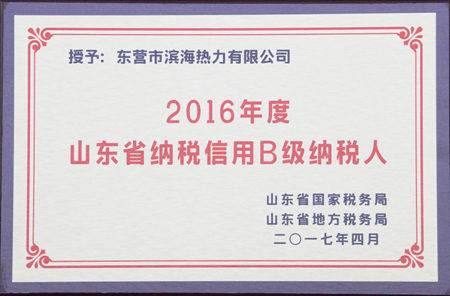 近日,2016年度山東省納稅信用級別評價結果發布,集團公司下屬子公司金嶺股份、金嶺化學、金嶺置業、金嶺新材料、濱海熱力獲得表彰。