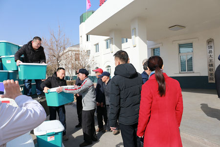 2018年2月12日,金嶺集團總裁趙棟來到大王鎮敬老院走訪慰問,在新春佳節來臨之際為敬老院每位老人送去一份營養品新春愛心大禮包,表達公司對老年人的關愛之情。大王鎮人大主席侯向斌、敬老院院長王振江對公司多年來倡導尊老敬老、關注養老事業的舉動給予高度評價。
