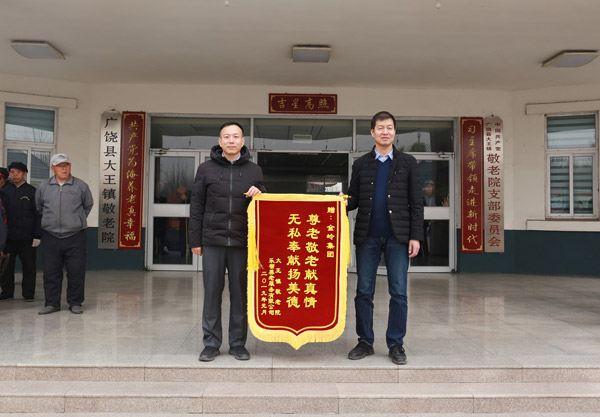 2019年1月30日,在中華民族傳統(tǒng)節(jié)日己亥豬年春節(jié)即將到來之際,金嶺集團總裁趙棟一行到大王鎮(zhèn)敬老院走訪慰問,為每位老人送去一份營養(yǎng)品新春愛心大禮包,以表達公司對老年人的關愛之情。大王鎮(zhèn)人大主席侯向斌、敬老院院長陳洪敏對公司多年來關注養(yǎng)老事業(yè)給予高度評價。 尊老敬老是中華民族的傳統(tǒng)美德。多年來,在企業(yè)快速發(fā)展的同時,金嶺集團崇尚敬老事業(yè),每年都為當地敬老院的老人送去慰問品,體現了對老年人的關心關愛,營造了愛老敬老的社會氛圍。 在多年來的發(fā)展歷程中,金嶺集團勇于承擔社會責任,積極參與愛老敬老、環(huán)保、扶貧、救災、助殘、扶危濟困等公益慈善事業(yè),大力支持當地教育、文化、醫(yī)療、基礎設施建設,為地方各項社會事業(yè)發(fā)展做出了突出貢獻。