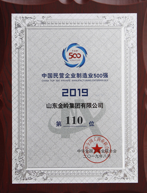 2019年8月22日,由全國工商聯、青海省人民政府共同主辦的“2019中國民營企業500強峰會”在青海西寧舉行。會議發布了2019中國民營企業500強系列榜單,公司入榜“2019中國民營企業500強”,位列第191位,同時入榜“2019中國民營企業制造業500強”,位列第110位。
