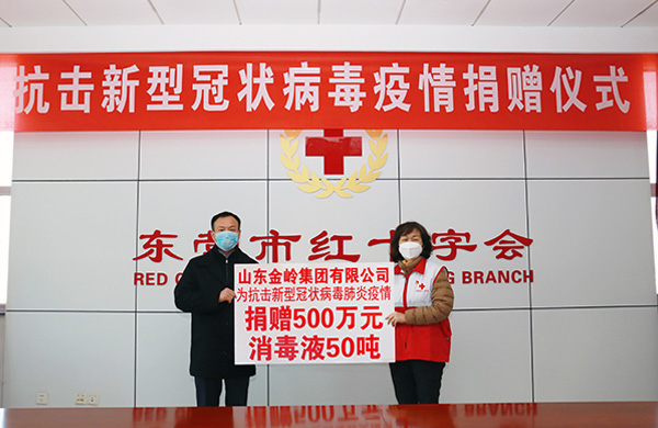 金嶺集團向東營市紅十字會愛心捐贈500萬元及50噸消毒液