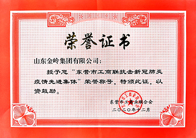 2021年4月,東營市工商業聯合會授予山東金嶺集團有限公司“東營市工商聯抗擊新冠肺炎疫情先進集體”、“東營市工商聯東西部扶貧協作和對口支援先進集體”、“東營市百企幫百村精準扶貧行動先進集體”榮譽稱號,以表彰公司發展不忘回饋社會、踐行企業社會責任的可貴精神。公司在多年來的發展歷程中,始終不忘創業初心,積極參與愛老敬老、捐資助學、扶貧濟困、慈善賑災、幫扶農村建設等活動,為各項公益事業發展做出了突出貢獻。