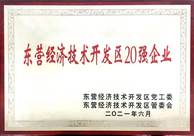 2021年7月,在東營經(jīng)濟技術開發(fā)區(qū)黨工委、東營經(jīng)濟技術開發(fā)區(qū)管委會組織召開的“兩優(yōu)一先”表彰暨“實干突破”大競賽、大比武表彰獎勵大會上,山東金嶺新材料有限公司被授予“東營經(jīng)濟技術開發(fā)區(qū)20強企業(yè)”,以表彰新材料公司為東營開發(fā)區(qū)經(jīng)濟建設取得的突出成績。