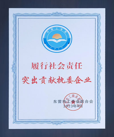 2023年4月,東營市工商業聯合會授予金嶺集團 “履行社會責任突出貢獻執委企業”榮譽稱號,對多年來公司堅持發展不忘回饋社會、踐行企業社會責任的擔當精神給予表彰。