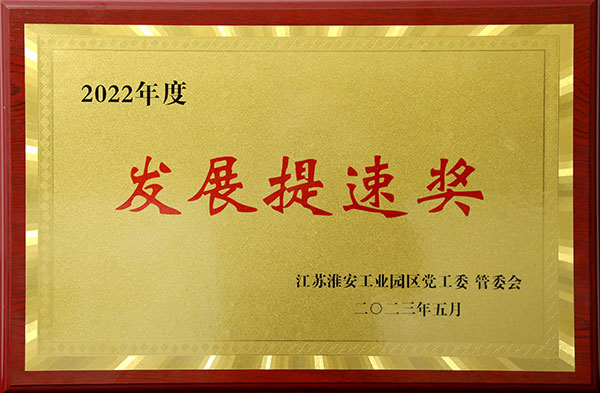 2023年5月10日,在淮安工業(yè)園區(qū)管委會舉辦的高質(zhì)量發(fā)展總結(jié)動員大會暨“沖刺雙過半”經(jīng)濟運行調(diào)度會上,江蘇富強新材料有限公司被授予“2022年度發(fā)展提速獎”,以表彰公司對當(dāng)?shù)亟?jīng)濟發(fā)展做出的突出貢獻。