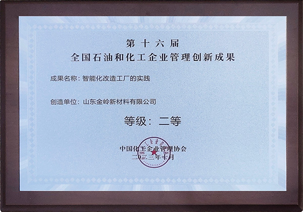 金嶺新材料榮獲“第十六屆全國石油和化工企業管理創新成果”二等獎