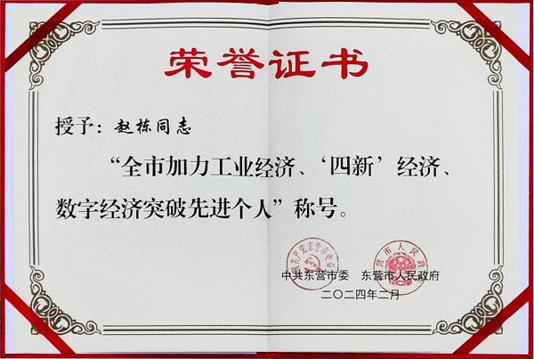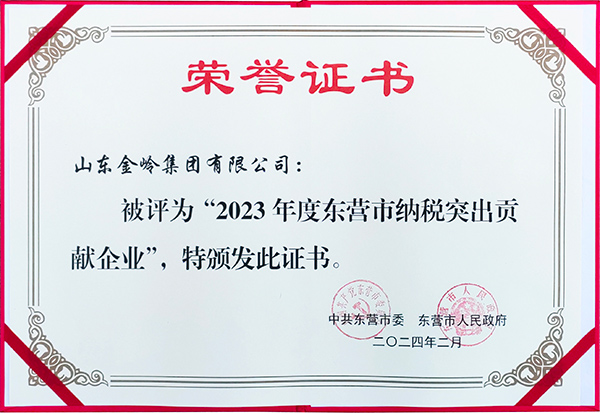 2024年2月20日,在東營市委、市政府召開的東營市2023年度綜合表彰暨高質(zhì)量招商引資項(xiàng)目建設(shè)大會(huì)上,山東金嶺集團(tuán)有限公司被評為“東營市納稅突出貢獻(xiàn)企業(yè)”,總裁趙棟被授予“全市加力工業(yè)經(jīng)濟(jì)、‘四新’經(jīng)濟(jì)、數(shù)字經(jīng)濟(jì)突破先進(jìn)個(gè)人”榮譽(yù)稱號,以表彰公司在復(fù)雜的經(jīng)濟(jì)形勢下,依法納稅、誠信經(jīng)營,對地方經(jīng)濟(jì)發(fā)展做出的突出貢獻(xiàn)。