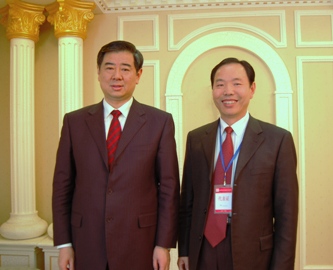 集團公司董事長趙曰嶺以“山東省企業聯合會、山東省企業家協會、山東省工業經濟聯合會、山東省質量協會”四會副會長的身份受邀出席了會議并在主席臺就座。會后,王軍民副省長親切接見了趙曰嶺董事長,并同他合影留念。