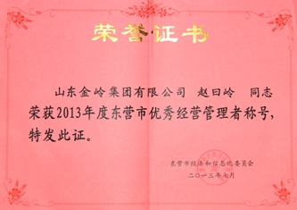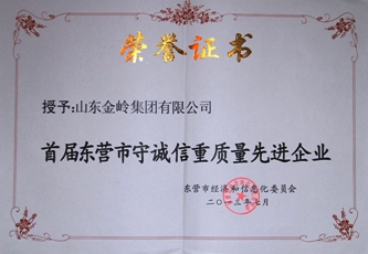 近日,公司被東營市經濟和信息化委員會授予“首屆東營市守誠信重質量先進企業”榮譽稱號,董事長趙曰嶺被授予“2013年度東營市優秀經營管理者”榮譽稱號。多年來,公司堅持誠實守信的經營理念,不斷加強質量管理,在促進全市經濟社會更快更好發展中發揮了模范帶頭作用,成為我市企業守誠信重質量的先進典型。